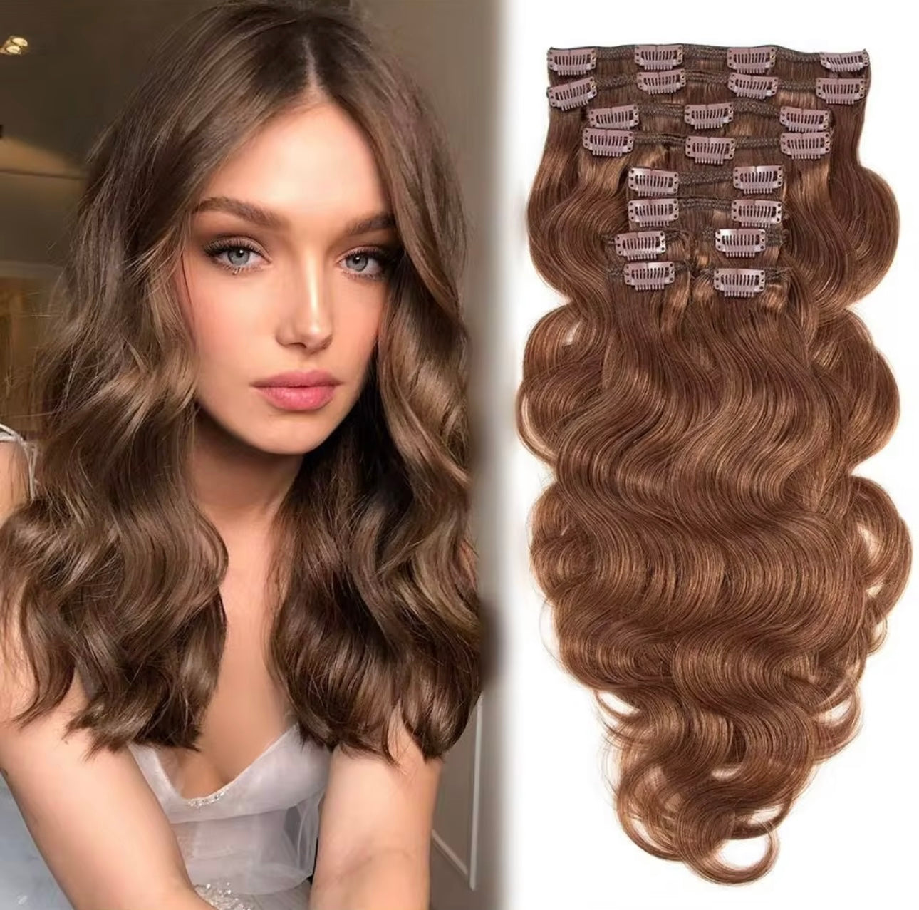 Clips Castaño Claro Ondulado